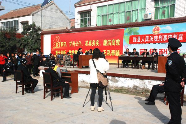 为方便群众诉讼,更好地落实司法为民举措,睢县人民法院大力开展巡回审判活动,主动送法下乡,为广大人民群众送去生动、直观的法律教育,而且在巡回审理现场进行以案说法,使法制教育更亲近化、形象化和具体化,从而实现了审理一案,教育一片的效果。图为11月14日,睢县人民法院刑事审判庭在睢县北关新村开庭审判了干军良诈骗与周荣峰生产销售有毒有害食品罪两案。