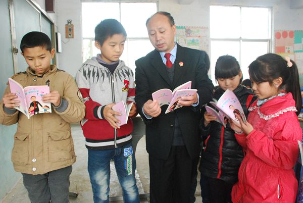 11月17日下午,睢县人民法院3名法官一行来到长岗镇李庙小学,开展“关爱留守儿童,送法进校园”活动,为这里的留守儿童送去一份法律关怀。