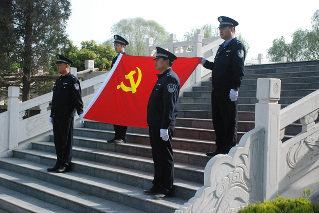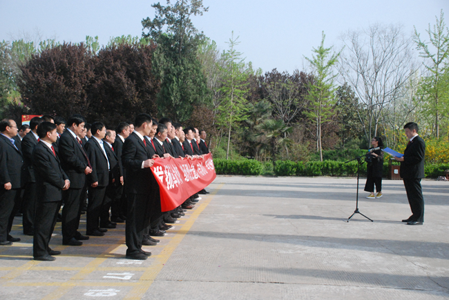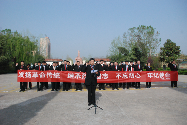 在雄伟的烈士纪念碑前,大家神色凝重,为烈士们敬献了花篮,静静地默哀三分钟,向长眠在这里的睢杞战役中英勇牺牲的人民解放军烈士表达深深的哀思和崇高的敬意,并庄严地举起右手,重温了入党誓词。