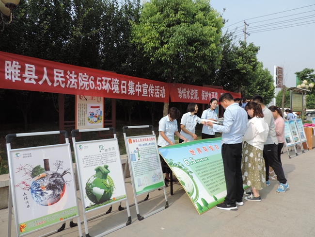6月4日,睢县法院联合县国土局、县水利局、县环保局等部门开展了以“美丽中国,我是行动者”为主题的世界环境日普法宣传活动。