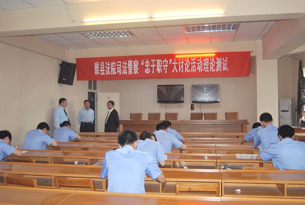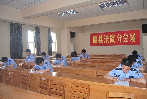 为了检验和巩固大讨论活动效果,5月8日上午,睢县法院利用双休日,在六楼会议室组织全体法警进行了理论测试,睢县法院院长王养庆,党组成员、纪检组长吴捍卫亲临考试现场巡视考务工作。