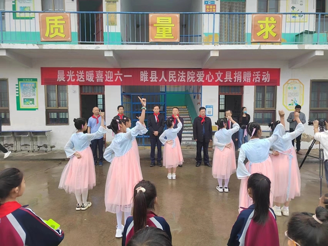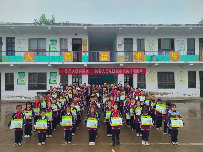为进一步关爱青少年儿童健康成长,在“六一”儿童节到来之际,5月30日上午,睢县法院到定点帮扶联系村城郊乡保庙村保林小学开展爱心文具捐赠活动,县委常委、最高人民法院驻睢县挂职副县长陈明,最高人民法院驻睢县选调生,睢县法院党组书记、院长马法会,县法院驻村工作队,县团委副书记贾强,凤城街道党工委书记徐永杰,凤城街道人大主席刘本东等参加活动。