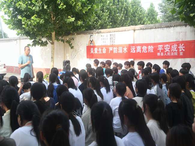为深入开展文明创建工作,关爱青少年健康成长,在暑期即将到来之际,6月20日,睢县法院尚屯法庭与睢县蓝天水上义务救援队到尚屯一中家长学校开展“关爱生命严防溺水,远离危险平安成长”防溺水安全教育宣传活动。