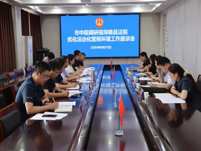 6月27日,商丘中院党组成员、副院长戴蕙一行5人到睢县法院调研指导优化法治化营商环境并召开座谈会。睢县法院党组书记、院长马法会,党组成员、副院长杨洁以及相关部门负责人参加座谈会。