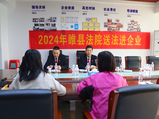 为进一步延伸司法服务触角,切实服务保障企业发展,10月16日,睢县法院党组成员、政治部主任王永生一行前往亚新智能、金振源等企业,开展送法进企业普法宣传活动,为护航企业健康发展提供优质高效法律服务。