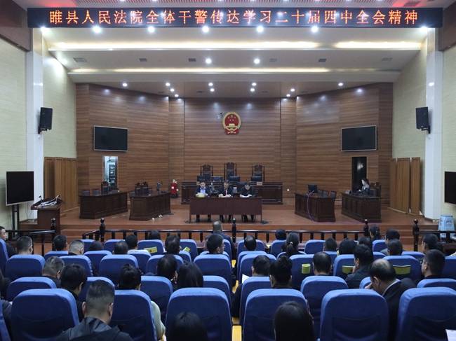 11月 3 日,睢县人民法院召开全体干警大会,专题传达学习党的二十届四中全会精神,研究部署贯彻落实举措。院党组书记、代院长刘一宇主持会议并讲话,全体干警参加会议。
