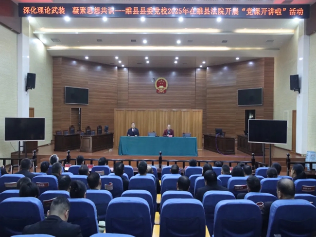 11月10日,为切实以理论学习强化法院干警思想根基,睢县法院邀请睢县县委党校宣讲团走进法院,为全院干警带来一堂精准对接司法实践的专题党课。县法院领导班子成员、中层干部及全体干警全员参与学习,县委党校校务委员、高级讲师蒋文涛担任主讲,院党组成员、副院长祝黎主持本次活动。