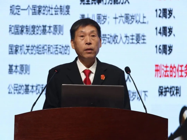 随后,王永生重点介绍了《宪法》《民法典》《刑法》《未成年人保护法》四部核心法律,用“大家长”“百科全书”等形象比喻帮助同学们理解法律的功能与意义,详细解读了未成年人刑事责任年龄划分、民事行为能力等关键知识点,让抽象的法律条文变得通俗易懂。