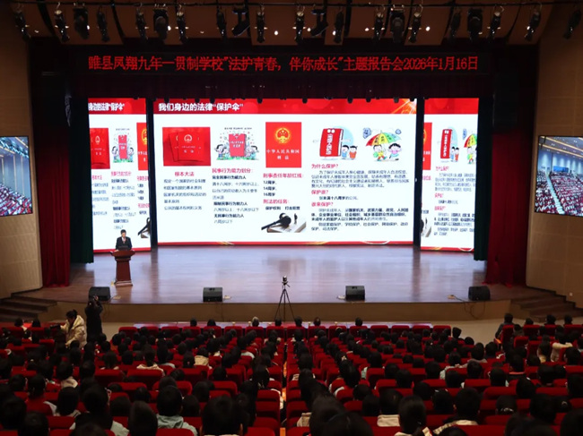 为筑牢青少年法治思想防线,护航未成年人健康成长, 1月16日上午,睢县人民法院走进睢县凤翔学校,开展“法护青春 伴你成长”送法进校园活动。院党组成员、政治部主任王永生以生动鲜活的方式为700余名同学送上了一堂干货满满的法治课,让法治种子在校园生根发芽。
