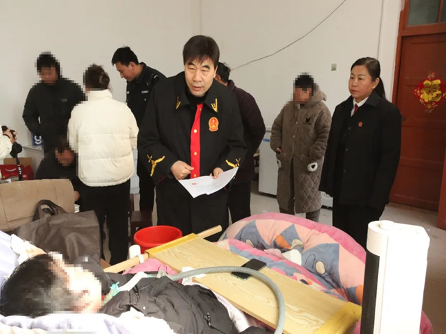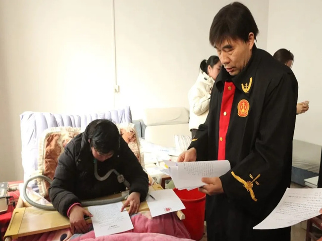 在离开时,杨艳华对病床上的李某温柔安抚道:“李某,我们理解你这十年的不易,但也希望你能放下过往恩怨,向前看。法院会保障你的合法权益,好好照顾自己,积极面对生活。”王海涛也对李某的家属说道:“后续法院也会尽力帮你们对接相关部门,争取相应的生活保障支持,日子会慢慢好起来的。”