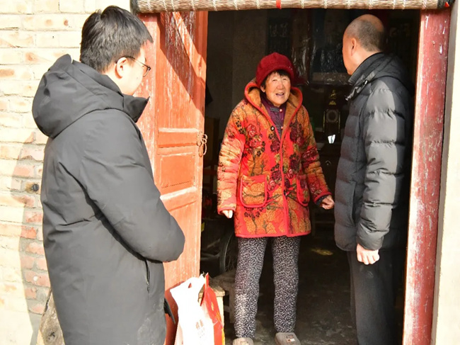 慰问过程中,工作队员们踏着乡间小路,逐户走访慰问,与群众面对面拉家常、话冷暖、听心声,将每份慰问品亲手送到帮扶户手中,让寒冬里的保庙村涌动着融融暖意。