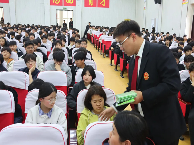 4月2日,睢县人民法院刑事庭走进县职业技术教育中心,开展“送法进校园”活动。刑事庭法官乔家习以生动鲜活的方式,为该校共青团员和800余名师生送上了一堂法治课,用司法力量为青少年健康成长保驾护航。