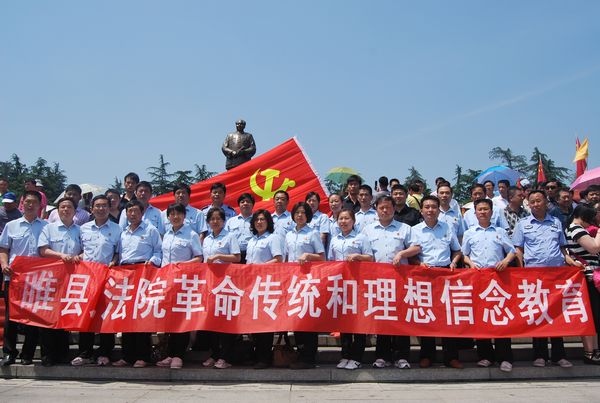 在建党90周年来临之际,为进一步加强革命传统和理想信念教育,5月28日至29日,睢县人民法院利用双休日组织干警赴湖南韶山和宁乡县等地,深切缅怀老一辈革命家的丰功伟绩,学习老一辈革命家的崇高品格,将“发扬传统、坚定信念、执法为民”主题教育实践活动引向深入。