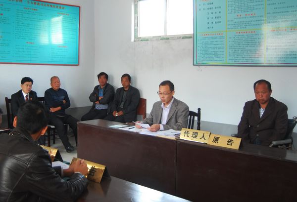 2012年10月25日,睢县法院河堤法庭赶赴涧岗乡审理了一起工地上受伤赔偿纠纷案,刘某感动地说:“为了我,你们都来到俺家门口办案子了……”刘某在年初跟人到中牟县工地上打工,不幸摔伤,右腿骨折,至今不能行走。睢县法院接到诉状后,考虑其行为不便,当即决定亲赴刘某处为其办案,于是,便出现了开头的一幕。