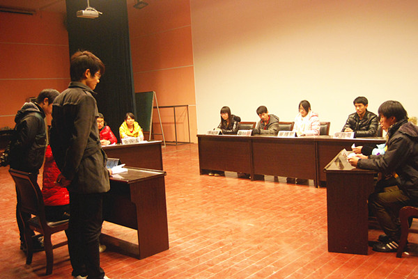 图一 同学们认真开展“模拟法庭”活动